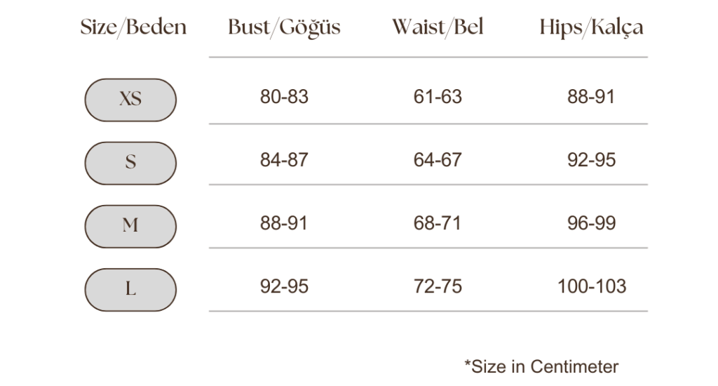Koleksiyonlarımızda kullandığımız zarif kesimler ve doğal dokuların üzerinizde kusursuz durması için bedeninizi doğru tanımanız önemlidir. Siparişiniz öncesinde vücut ölçülerinizi alarak, tasarımlarımızın sizde tam olarak nasıl duracağını öngörebilirsiniz. Fransız beden sistemini temel alarak hazırladığımız bu rehber, doğru tercihi yapmanıza yardımcı olacaktır.